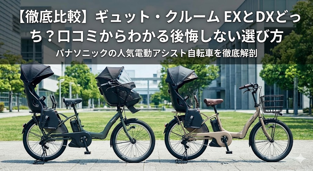 【徹底比較】ギュット・クルーム EXとDXどっち?口コミからわかる後悔しない選び方 パナソニックの人気電動アシスト自転車「ギュット・クルーム」の購入を検討中ですね。高い買い物ですから、絶対に失敗したくないというお気持ち、よくわかります。 「コン... -
