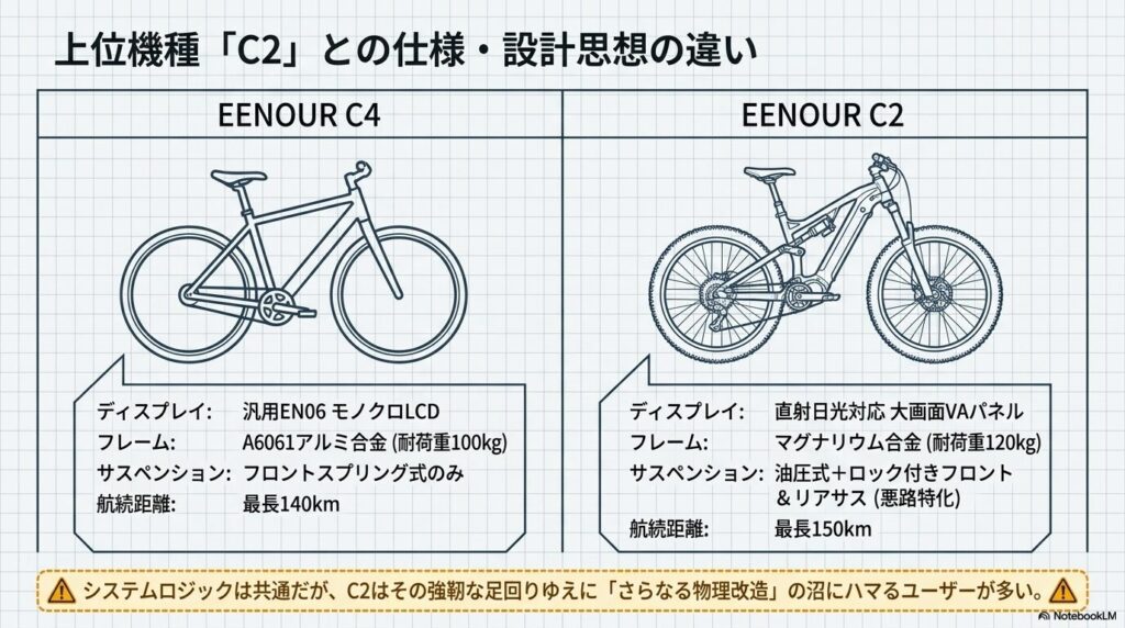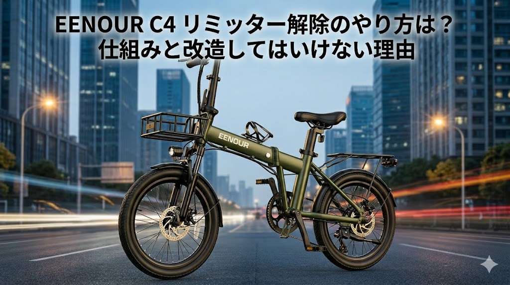 製品に同梱されているEENOUR C4の説明書には、速度制限を外すための具体的なシステムへのアクセス方法は一切記載されていません。 本記事では、あえて推奨するものではありませんが、正しい知識を持つための情報として、液晶ディスプレイであるEN06のリミッター解除の手順や、自転車の心臓部として出力を制御するEENOUR C4のコントローラーの役割について詳しく解説します。
