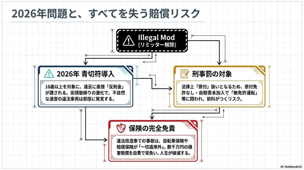 • 日本の道路交通法における法的境界線と事故時の重大なリスク