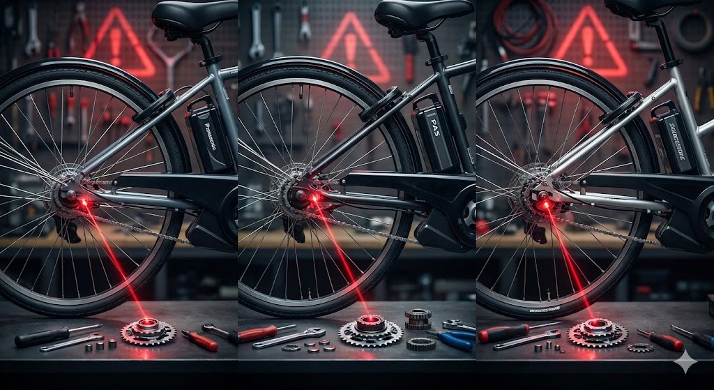 しかし、近年のモデルではこのような単純な細工を検知する「異常検知プログラム」が搭載されているケースも増えています。一定時間、ペダルの回転数と車輪の回転数の整合性が取れない場合にエラーを表示し、アシストを停止させる機能です。