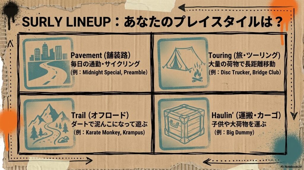 自転車を単なる移動手段ではなく、自分を表現するライフスタイルの一部として捉えるすべての人へ、Surlyの世界をご案内します。
