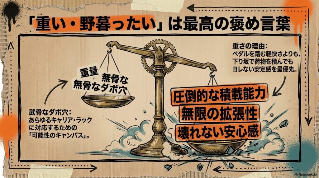 しかし、サーリーのオーナーの多くは、その重量を「圧倒的な積載能力と、何があっても壊れない耐久性の代償」としてポジティブに受け入れています。