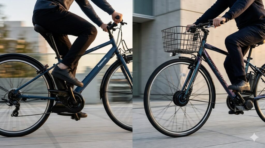 | 加速・アシスト感 | マイルドで安定重視。 スピードに乗ってからの巡航維持が得意。 | パワフルでダイレクト。 漕ぎ出しの瞬間にグンと前に出る加速感。 |