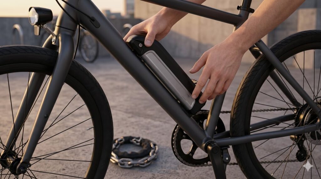 まず第一に挙がるのが「フロントヘビー(前輪の重さ)」です。前輪のハブに巨大なモーターが鎮座しているため、ハンドルを持ち上げて段差を越えたり、狭い駐輪場で前輪をラックに入れたりする際の重量感は相当なものです。