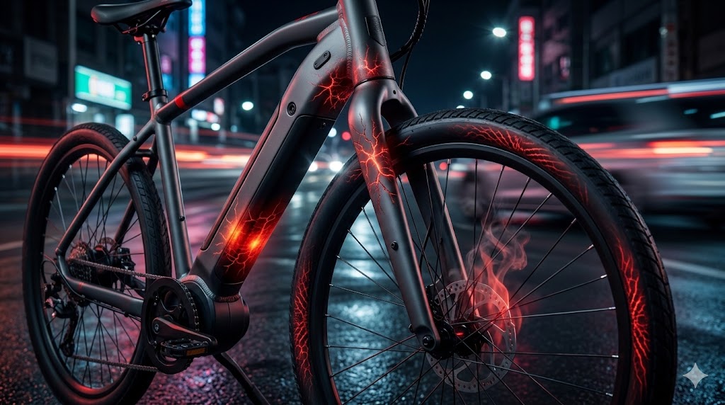 また、フレームの金属疲労も加速します。高速度での段差乗り越えや振動は、フレームの溶接部分に微細な亀裂を発生させ、ある日突然、走行中にフロントフォークが折れるといった大惨事を引き起こしかねません。